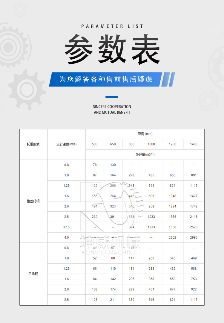 定貨時(shí)需注明:帶速、帶寬、輸送距離、輸送量、傾斜角度、物料特性、工作環(huán)境、堆積角度、皮帶材料等技術(shù)參數(shù)。